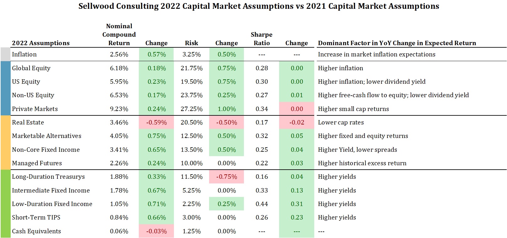 Sellwood’s 2022 Capital Market Assumptions portray a more optimistic environment for most asset classes, compared to a year ago.